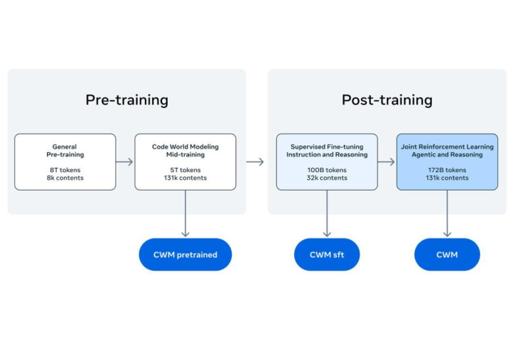 CWM模型算是Meta的一次概念验证,投入了不算多的算力训练这个小参数大模型,主要是为了检验将世界模型引入代码生成任务是否会显著提高生成代码质量。
