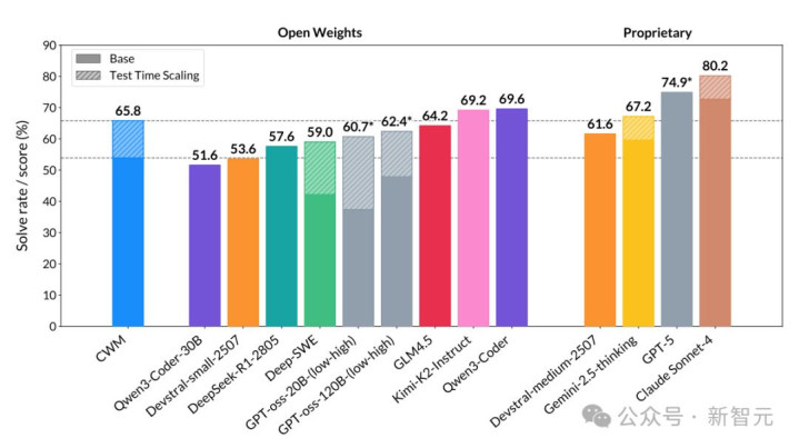 在该项测试中,32B小参数的CWM成绩为65.8%,逊于Qwen3-Coder和Kimi-K2-Instruct,与闭源的Gemini-2.5-Thinking接近,属于开源阵营第一梯队了。